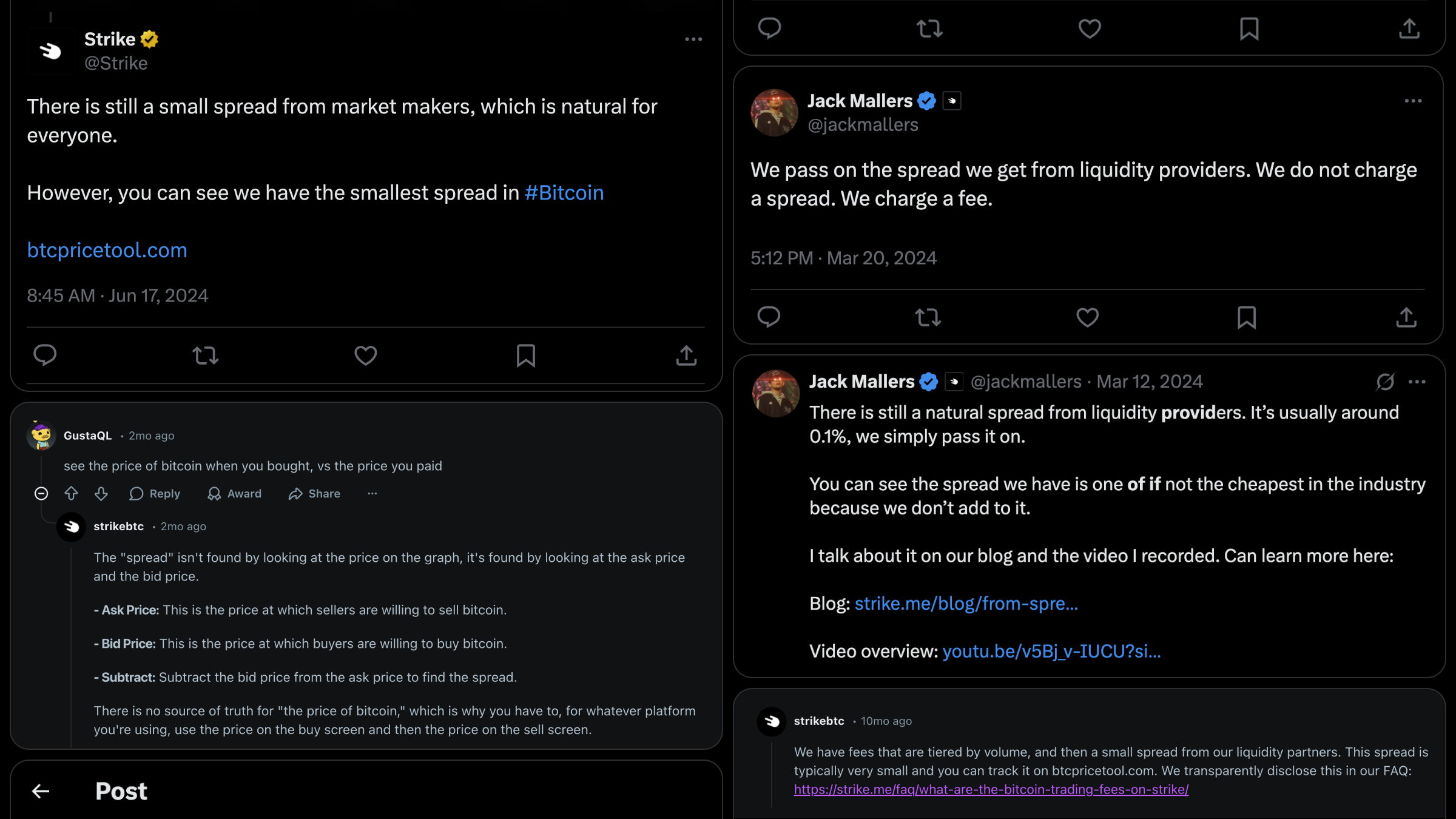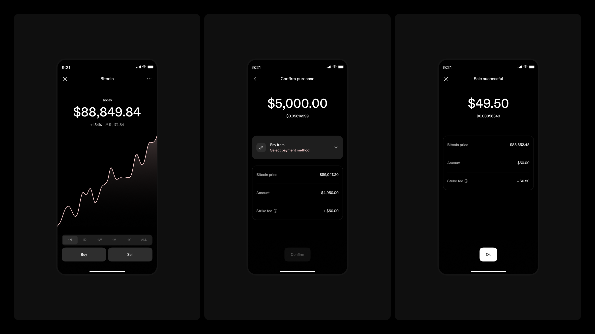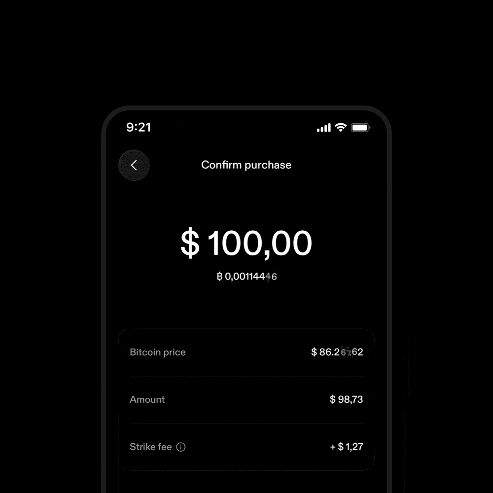 If you tap to buy and see $89,047.20, and tap to sell and see $88,652.48, that’s expected. We regularly request live quotes from our liquidity partners and offer the best possible prices. The $394.72 gap between them is not a fee charged by Strike.