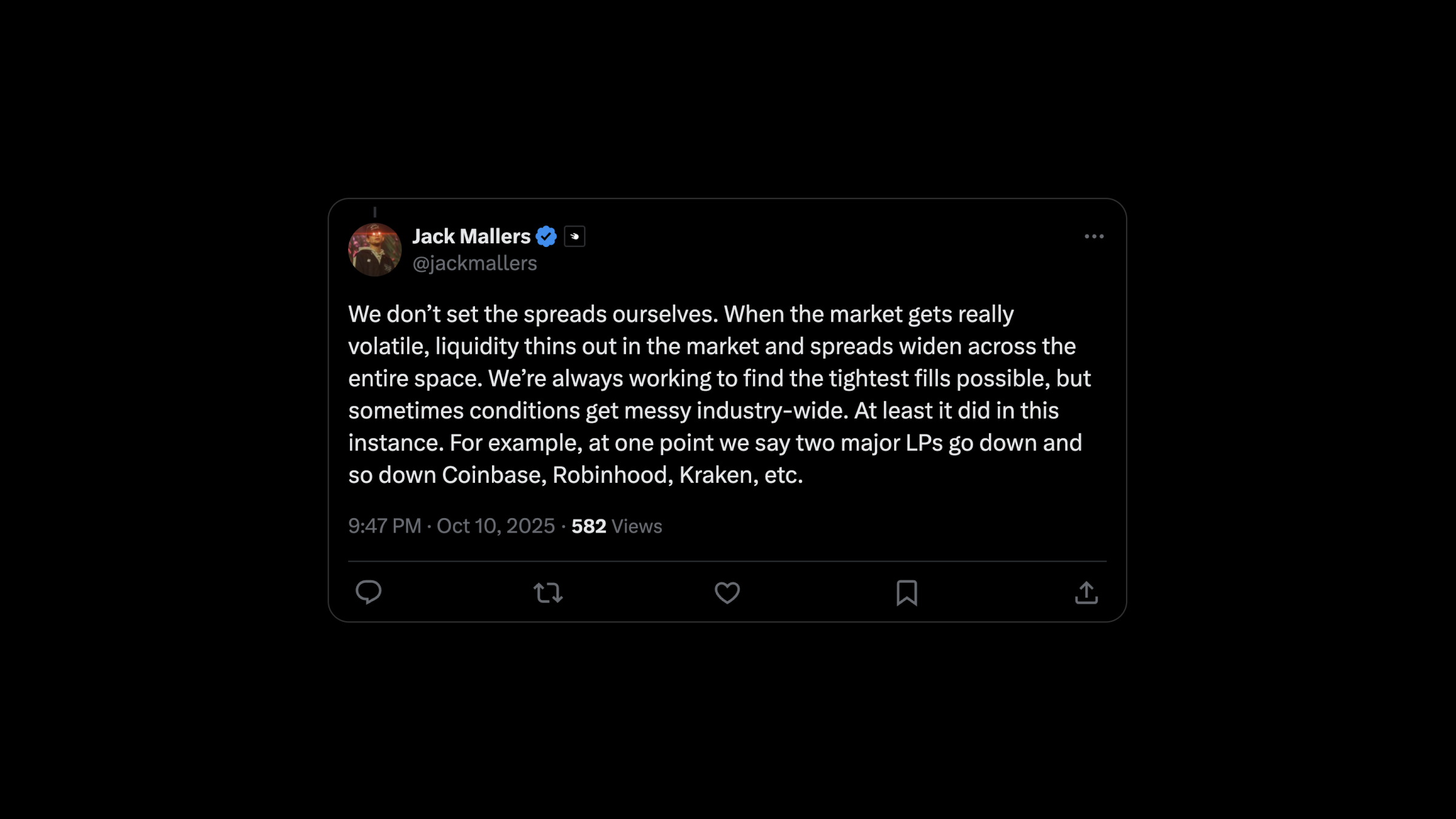 Strike has invested in integrating with multiple high-quality liquidity providers to ensure redundancy and competitive execution. However, during periods of high volatility, buy-side and sell-side demand can become unbalanced. When more people want to buy than sell (or the opposite), the bid/ask spread naturally widens throughout the entire market. Neither Strike nor our liquidity providers are “profiting more” during these times. This is simply how market microstructures behave under stress.